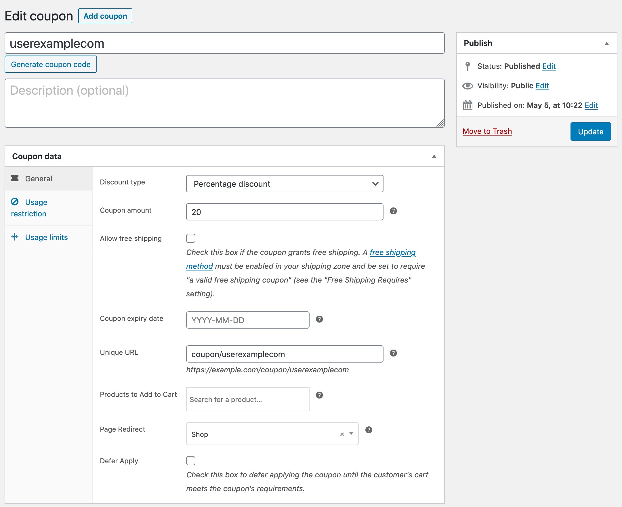 - Tick the box next to Enable the use of coupon codes.