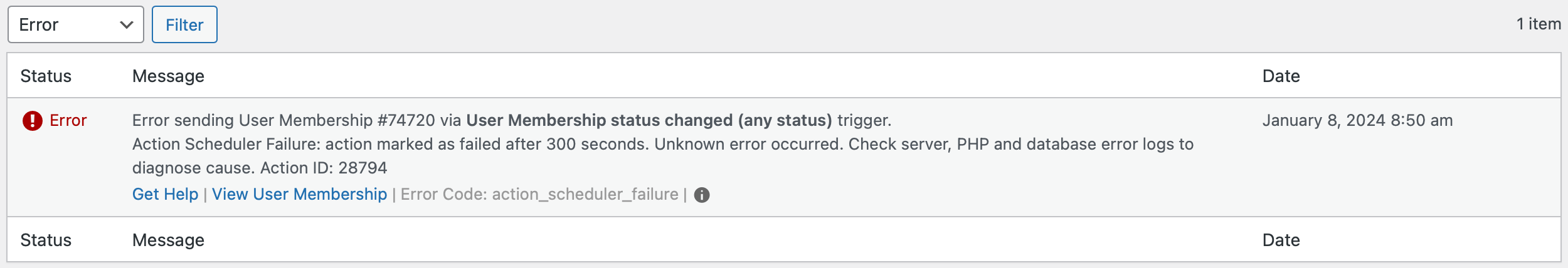 If you are seeing an action_scheduler_failure error with a message different to the above, there are several other potential causes for this.