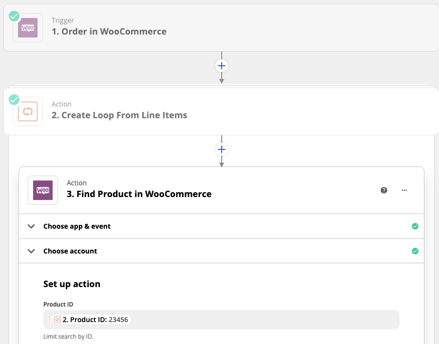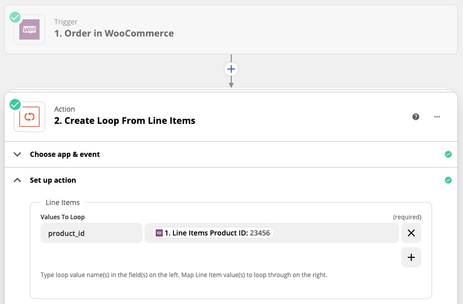 Adding a Looping by Zapier action to your Zap lets you perform your desired action more than once per Zap. This is particularly useful with WooCommerce Order triggers, which have multiple line items.