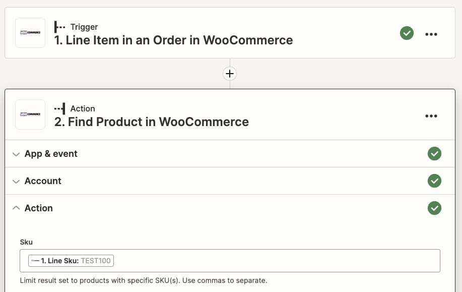 This same technique can be used for any other line-item aware field in Zapier Integration for WooCommerce. See the Actions and Searches chapter for a full list of these line-item-enabled fields.